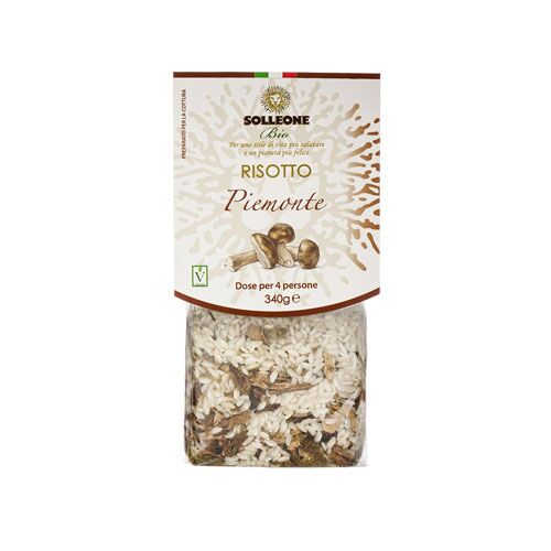 Das Risotto Piemonte Solleone Bio mit biologischen Steinpilzen ist ein Tribut an das traditionelle piemontesische Rezept. Sein intensives Aroma und seine cremige Textur bieten ein einzigartiges Genusserlebnis.
