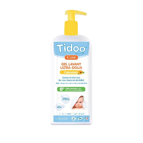 Tidoo Körper- und Haarwaschgel begleitet Sie jeden Tag, um die Haut Ihres Babys sauber, geschmeidig und weich zu halten.